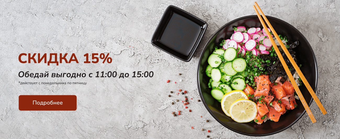 - Возможен самовывоз суши и роллов — удобно, быстро, со скидкой.